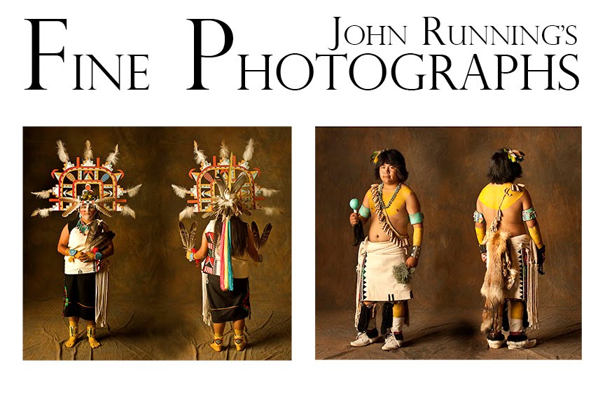John Running photographed the Hopi Dance Group - “Nuvatukya’ovi Sinom” on the 4th & 5th of July, 2009. This year again he had a unique opportunity when the group “Nuvatukya’ovi Sinom” was scheduled to perform at Heritage Square during the Fourth of July weekend. He invited them to use the Flagstaff Photography Center to change into their traditional dance clothes and then set up a studio space and made these photos prior to and after their performances. He had the oppotunity to photograph three different dances, Clown Dance, Rainbow Dance and the Watermaiden Dance.